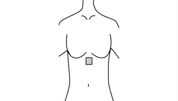 貼付位置(みぞおち)→へその上で、胸の骨(胸骨)の下のくぼんだ所。